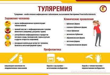 Туляремия очень заразна: восприимчивость людей к ней составляет почти 100%. В этой связи туляремию иногда называют “малой чумой” и относят к особо опасным инфекциям.